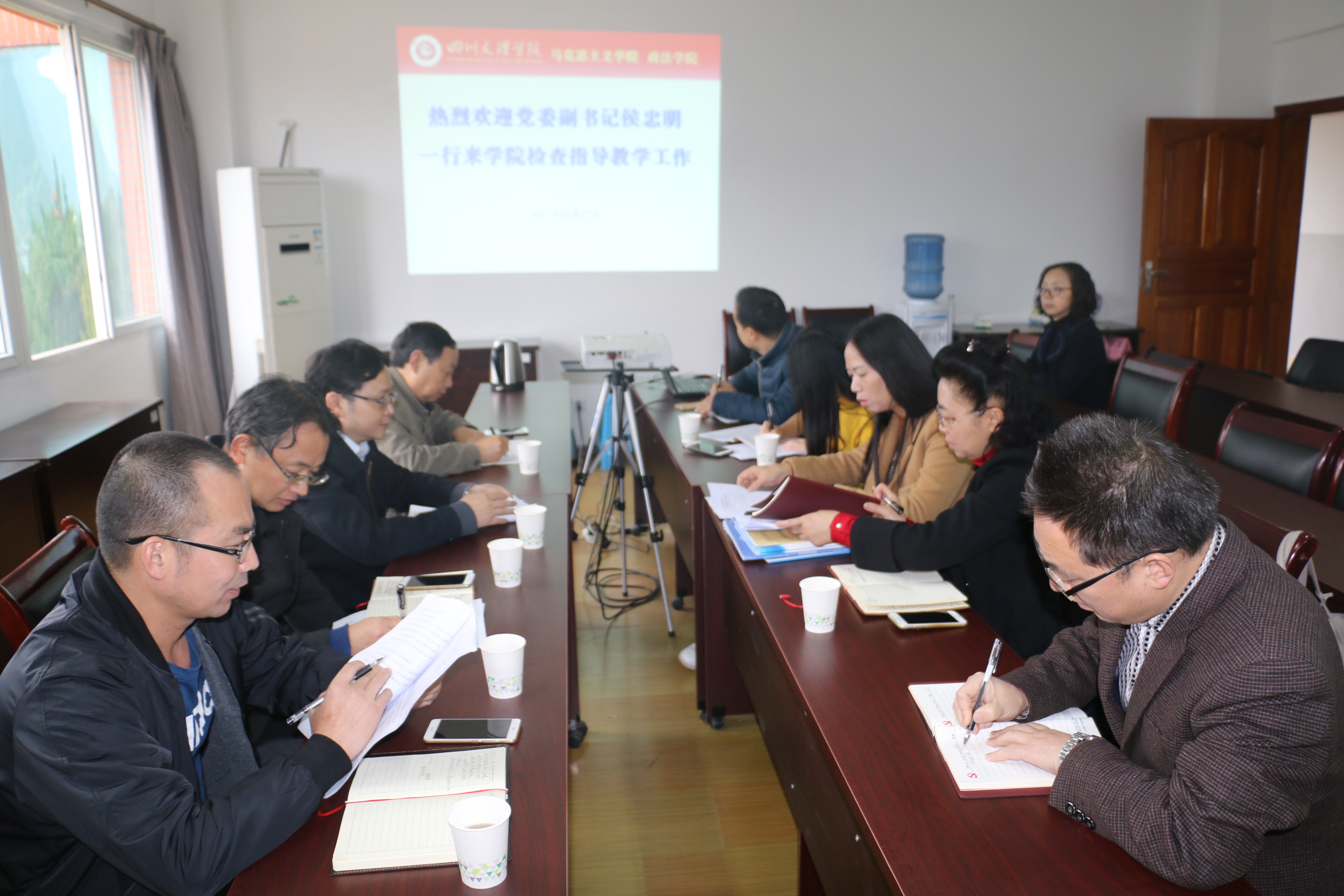 侯书记一行在考察了公司办公情况和档案、资料管理情况后,与公司部分党政领导、教研室主任及办公室工作人员一起在611会议室进行了交流。首先,朱德莉副经理代表公司从重点建设内容、教学运行基本情况和发展方向三个方面进行了工作汇报。刘春辉书记对公司党风、教风、学风建设方面的成效和问题做了汇报,并提出希望规范、提高教研室主任待遇等问题。曾宪文副处长对公司师生反应的硬件设施老旧问题给予答复,之后肯定了公司在专业评估、建设、管理上的成绩,并提出希望两院在质量工程项目、专业发展、实践基地建设、优势团队建设等方面继续努力,挖掘亮点,做出特色。陈正平教授肯定了公司教学与教学服务管理方面工作,但也指出公共课的教学问题依然存在,教研活动也有待进一步规范化。最后,侯忠明书记充分肯定了公司地位的特殊性和重要性,并对两院寄予了极大的期待,提出两院要在五个方面做好示范作用:一、做鲜明旗帜的示范;二、做教学改革的示范;三、做学科融合的示范;四、做依法治教的示范;五、做素质教育的示范。