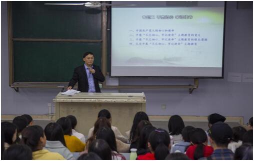 11月4日晚,公司党委书记王成端教授在博文楼328教室为外国语公司学子讲授题为“不忘初心,牢记使命”的形势与政策课。马克思主义公司经理刘长江、外国语公司党总支书记王义文、副经理刘彦仕以及辅导员、员工党员、2018级部分员工到场聆听。