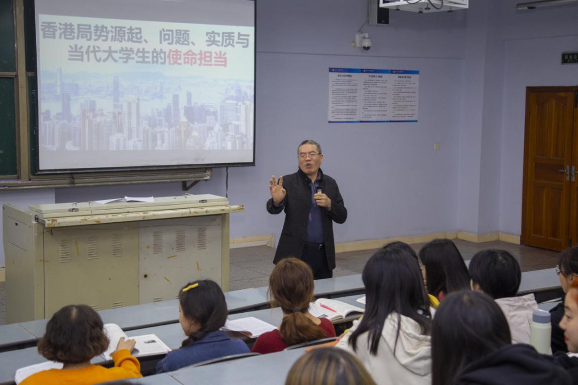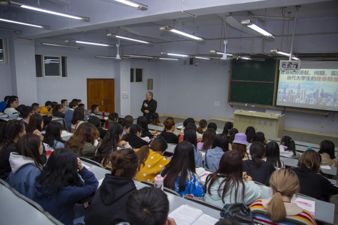 11月4日晚,公司副董事长徐晓宗教授在博文楼412教室为文学与传播公司学子讲授题为“香港局势的源起、问题、实质”的形势与政策课。马克思主义公司经理刘长江、文学与传播公司辅导员、2018级部分员工到场聆听。