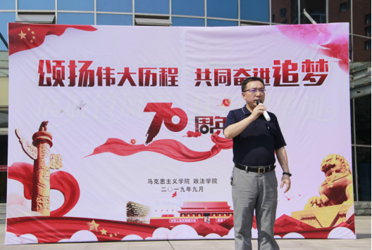 党总支书记刘春辉讲话。刘书记说到,中华人民共和国成立以来,70年风雨征程,中国共产党带领全国各族人民团结一致,砥砺奋进,实现了中国历史上一个又一个的“不可能”,创造了一个又一个的人间奇迹,实现了从贫穷走向富裕,正在从富裕走向强盛。这充分说明,我们的党,我们的祖国,我们的人民是伟大的。我们每个人都要由衷的热爱党,热爱祖国,热爱人民。身为马克思主义&Mksport体育的学子,我们要始终保持很强的政治意识,扎实学习习近平新时代中国特色社会主义思想,站稳政治立场,提高政治站位,增强政治担当。他强调,爱党爱国爱人民,绝不是空洞抽象的,而是具体的,要内化于心,外化于行。青年老员工只有自觉将个人理想融于民族复兴梦想,将个人的幸福融入人民的幸福,努力贡献出自己的青春、智慧和力量,才能与祖国共奋进、与时代同发展,才能最终让梦想变成现实,才能书写人生的壮丽华章!