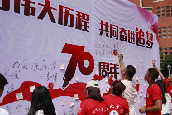师生们依次走上台在表白墙上书写对伟大祖国的祝愿,用真诚的赤子之心向祖国母亲诉说着自己内心炽热的情感。