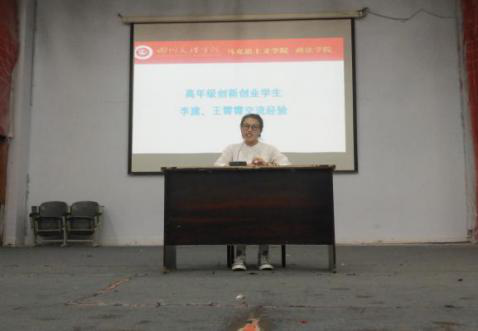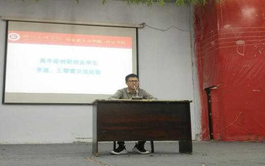 高年级创新创业员工李建、王宵宵分享创新创业经验。两位同学结合自身的创新创业亲身经历,讲述了他们创新创业的历程,鼓励同学们要有创新创业的勇气,勇于创业,敢于创新。