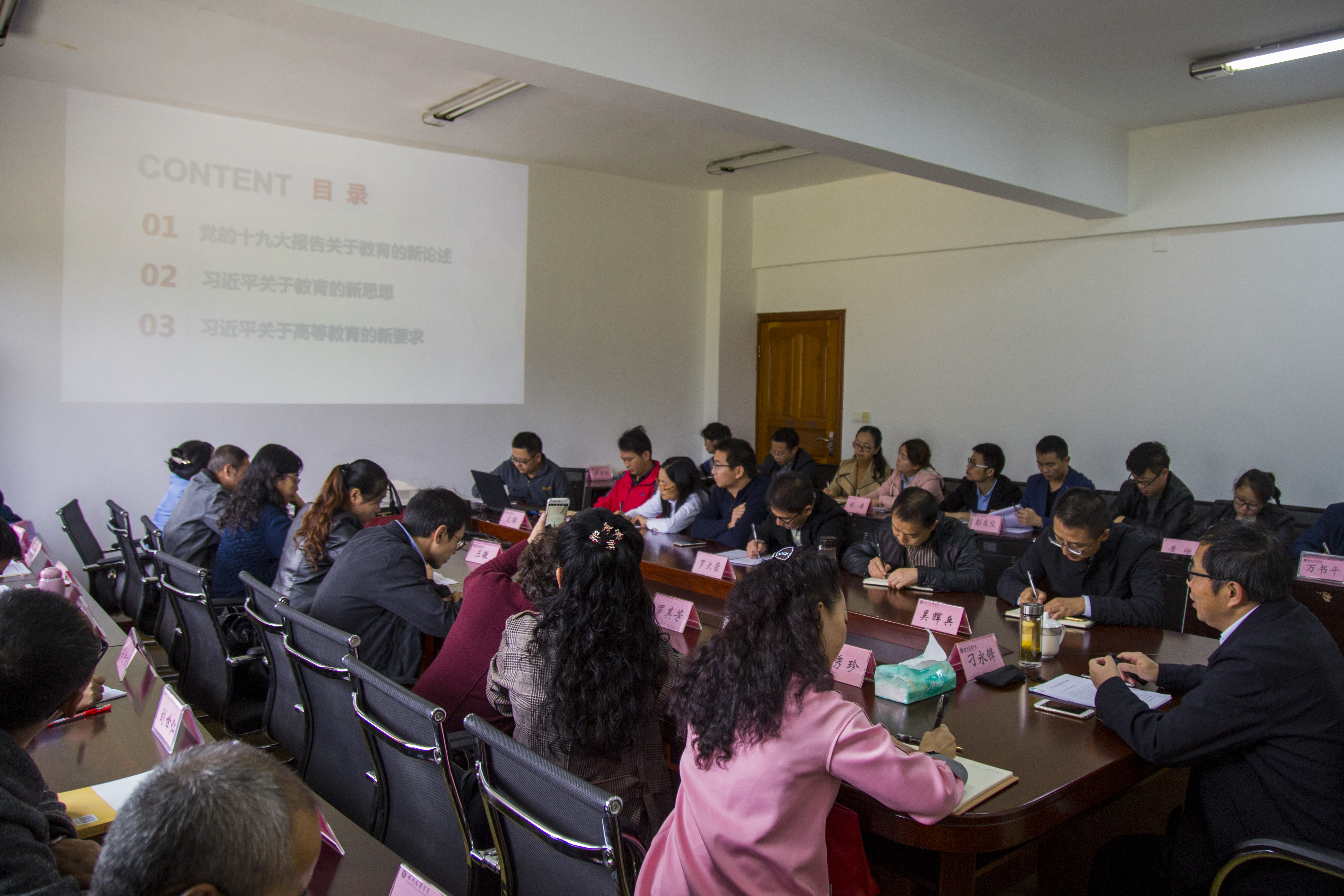 第一,党的十九大报告关于教育的新论述。首先明确了社会主义教育事业的总体方向以及不同阶段对教育提出的新要求,并不断增强教育对社会的作用;然后指明高等教育的任务、新成就和教育发展的不平衡、不充分性。其中,新时代高等教育的任务主要表现为实现内涵式发展,培养更多的一流人才。而教育的新成就则突出表现在五个方面:一是教育总体水平已经进入世界中上行列,二是教育质量明显提高,三是教育发展的条件有了历史性改变,四是教育国际影响力明显增强,五是教育改革全面深化。从这五个方面成就,我们能看到中国教育的明天更加灿烂辉煌。第二,习近平总书记关于教育的新思想。从六个方面阐述了教育的重要性。重点解读了习近平总书记提出的教育改革的“九个坚持”;并结合自己学习习近平教育思想的几点体会与公司全体教师作了分享。第三,习近平总书记关于高等教育的新要求。讲到习近平总书记指出高等教育的几个重要问题,关于党的教育方针的新描述、新说法,怎样培养人才的新要求等。重点强调了习近平总书记关于高等教育的卓越观,提出了教师应言传身教,特别是要培养德才兼备的人才等相关内容。