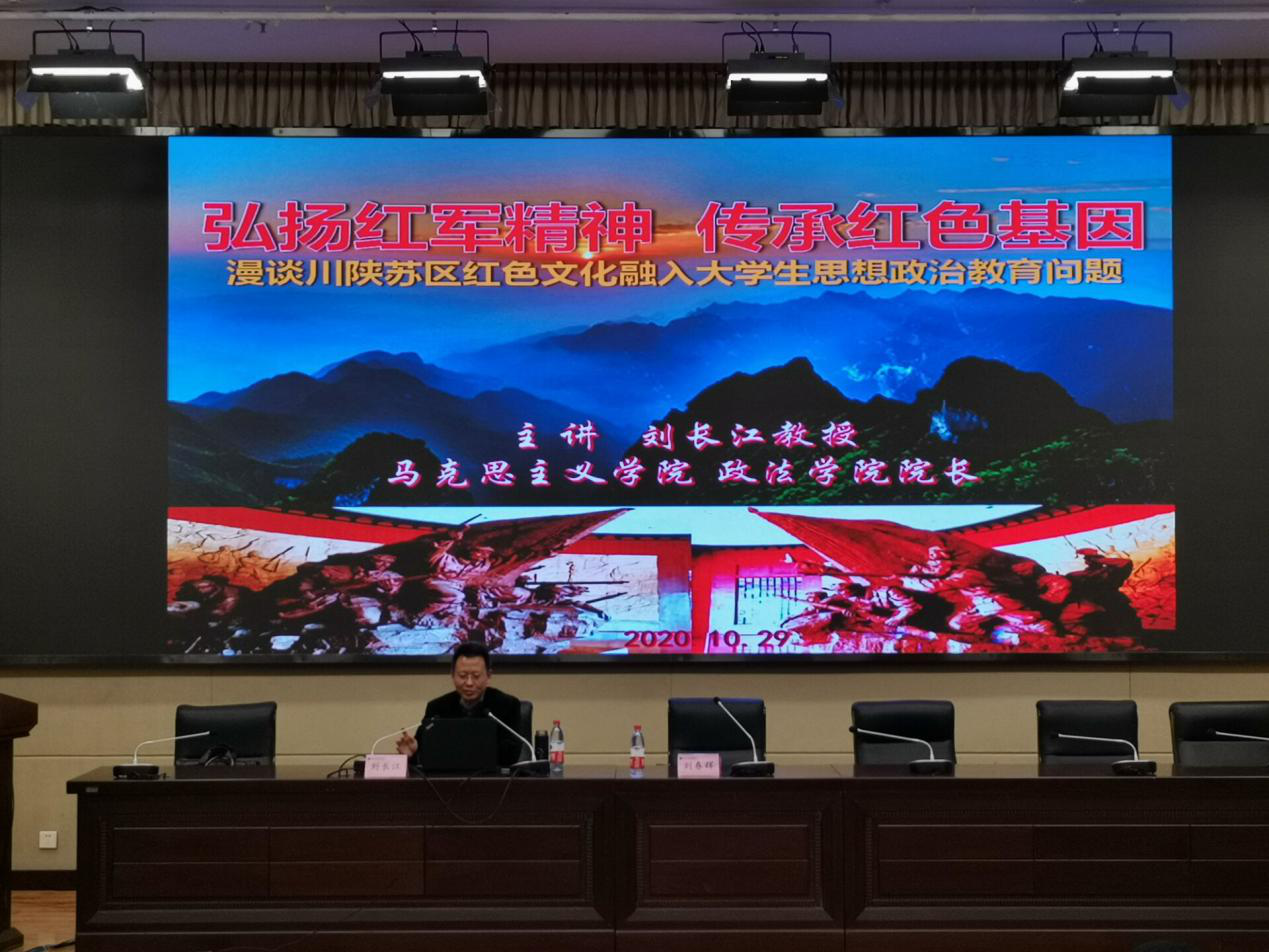 10月29日晚七点,马克思主义公司、Mksport体育经理刘长江教授在莲湖校区学术报告A厅作题为《川陕苏区红色历史与老员工思想政治教育》的学术讲座。马克思主义公司、公司党总支书记刘春辉主持讲座。