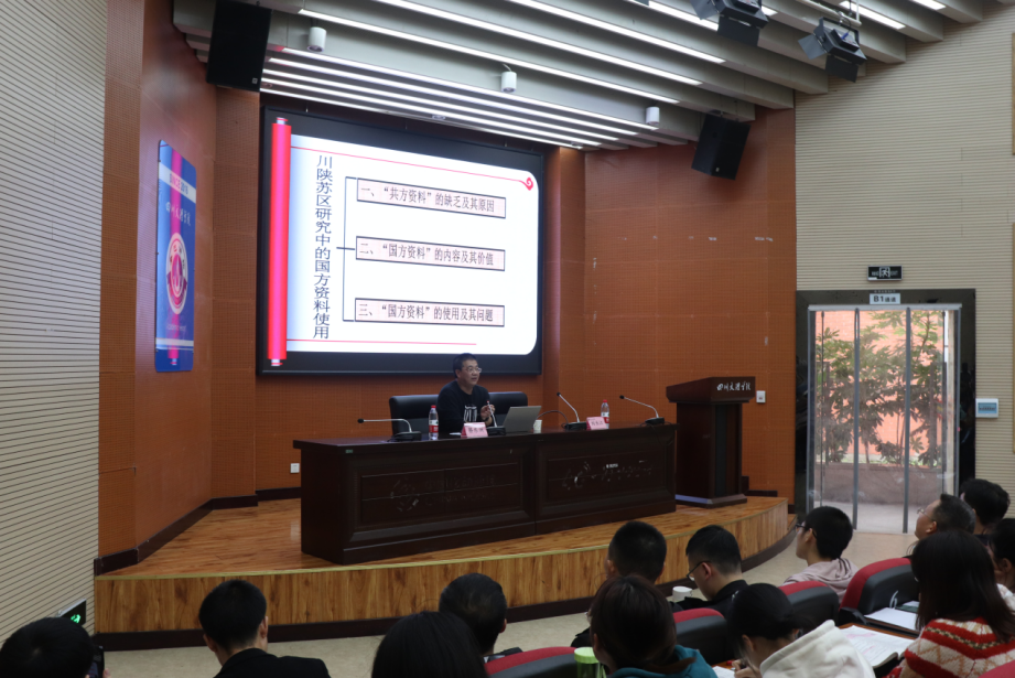 讲座中,蔡教授围绕川陕苏区历史研究过程中的“国方资料”使用问题这一主题进行讲授并提出自己的独到思考和见解。首先,他提出“共方资料”的缺乏,并辅以原因解释。其次,他说明了“国方资料”的内容及其价值,充分证明了在川陕苏区历史的研究中,“国方资料”使用的重要性。最后,他强调要科学地、正确地使用“国方资料”,让川陕苏区的研究归位于历史,进而将川陕苏区的历史研究推向深入。