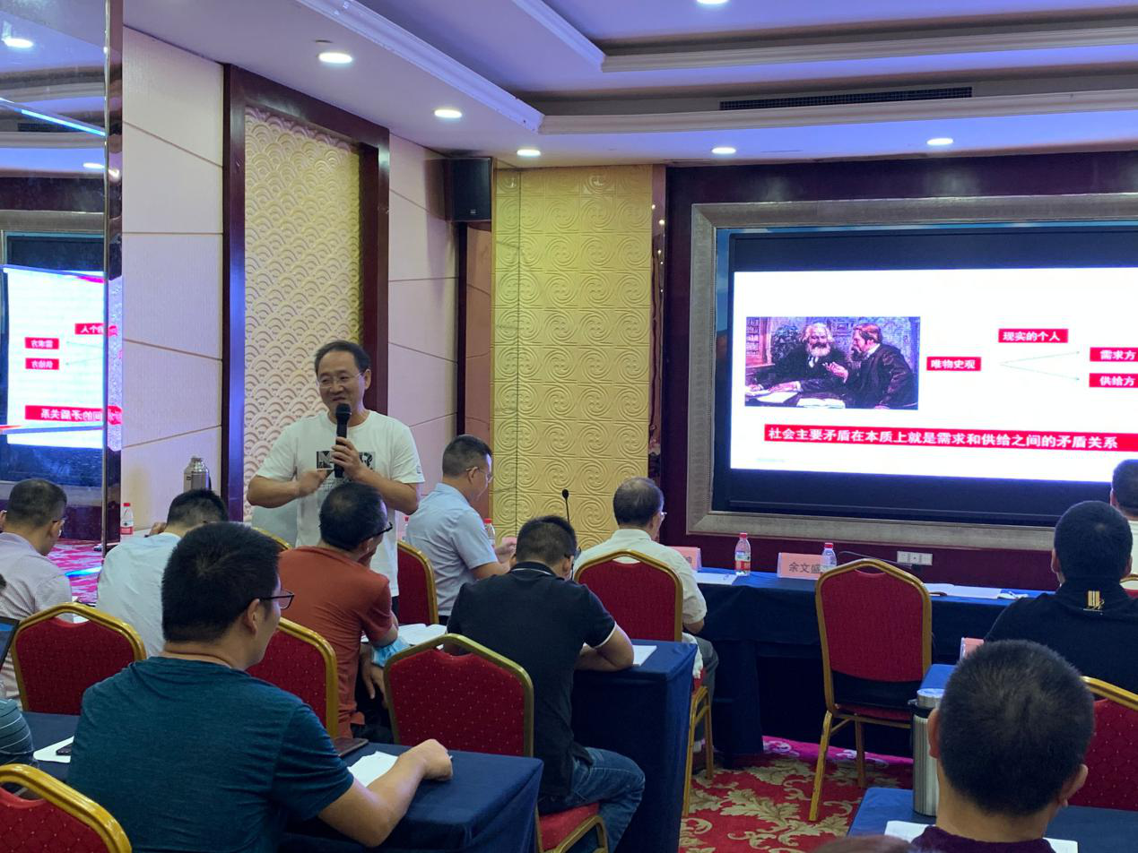 最后一位是满腹经纶的思政课兼职老师、财经管理公司经理傅忠贤做了《贯彻落实成渝双城经济圈建设国家战略,推动四川发展再跃新台阶》的主题分享,把本次备课会引向高潮。傅老师不仅有逻辑有层次地向大家讲授“成渝双城经济圈”的提出、部署、意义、举措和落实,还向在座的教师示范了如何把这个专题生动形象又深入浅出地向员工讲解。