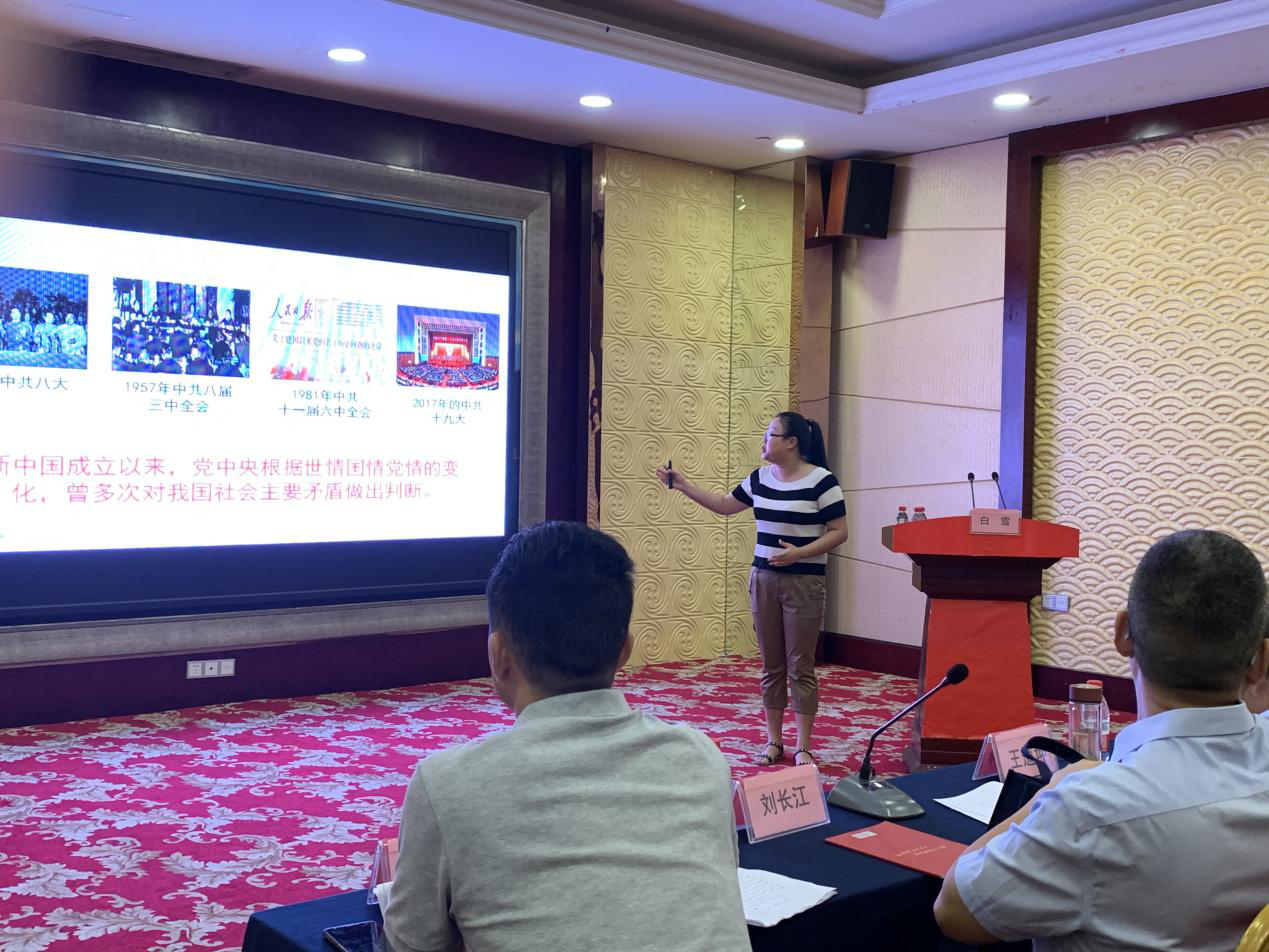 首先上场的是活力四射的青年教师白雪作题为《新时代我国社会主要矛盾的基本内涵》的公开课。白老师以案例教学为主要教学方式,通过全程剖析新时代“两变三不变”的国情世情党情,解答新时代我国社会主要矛盾的基本内涵。