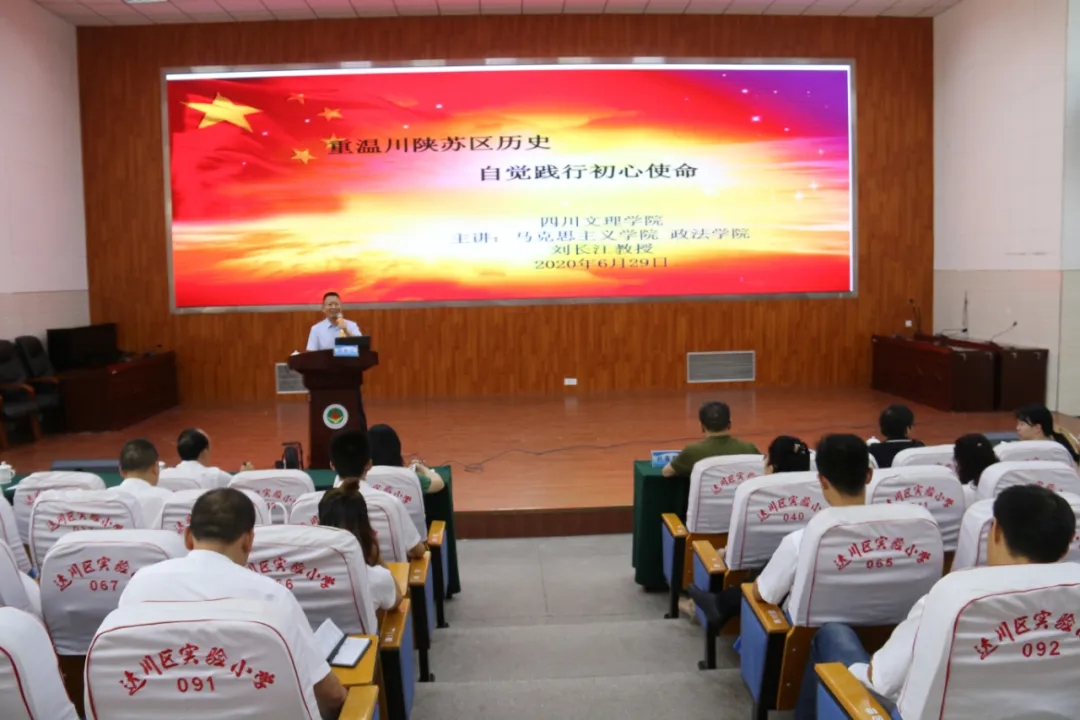 刘长江为在场党员作了题为“重温川陕苏区历史、自觉践行初心使命”的专题讲座。他从“固军坝起义”“万源保卫战”讲述到“奉命西进”“西路军战斗”,回顾了川陕苏区的历史,川陕根据地的铁血英雄用坚定执着的信仰、勇于牺牲的英雄气概、用无敌的青春和宝贵的生命为代价,书写了巴山儿女最壮烈英勇的诗篇。刘长江强调,作为一名党员,要时刻牢记并弘扬“智勇坚定、排难创新、团结奋斗、不胜不休”的巴山红军精神,自觉践行初心使命。