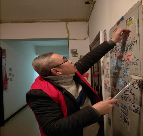志愿者们不怕苦、不怕脏、不怕累,用随身携带的小铲子小心翼翼的对墙面进行着处理。原先干净整洁的衣服一会便布满了灰尘,在严寒的冬季,志愿者们脸上也逐渐渗出了汗水……但大家依然充满了热情,情绪高昂的完成了志愿服务任务。在大家紧张有序两个多小时的忙碌后,墙面上的“牛皮癣”不见了,楼道里的杂物被清理干净了,小区人居环境变得更加整洁了。