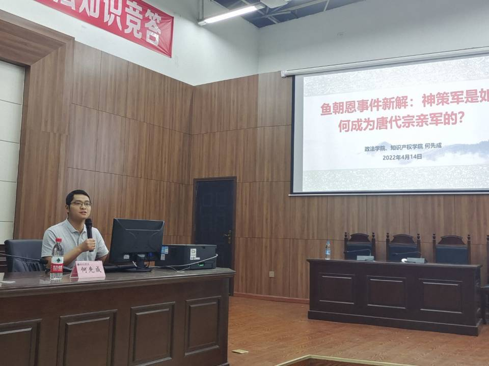 4月14日晚七点,公司副经理何先成博士在博文楼113教室作题为“鱼朝恩事件新解:神策军是如何成为唐代宗亲军的?”的学术讲座。