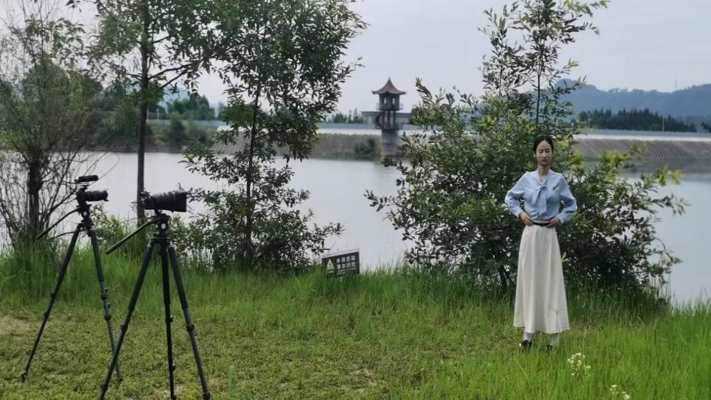 7月8日上午9时,“讲思政课”团队到达巴中市化成水库公园,这里是周老书记担任巴中县委副书记期间“整治化成河、修建化成水库”,播下了他生态保护的第一粒希望种子的地方,团队在这里讲述与拍摄“化成水库美如画”这部分内容。