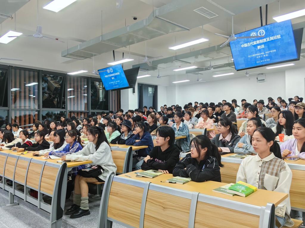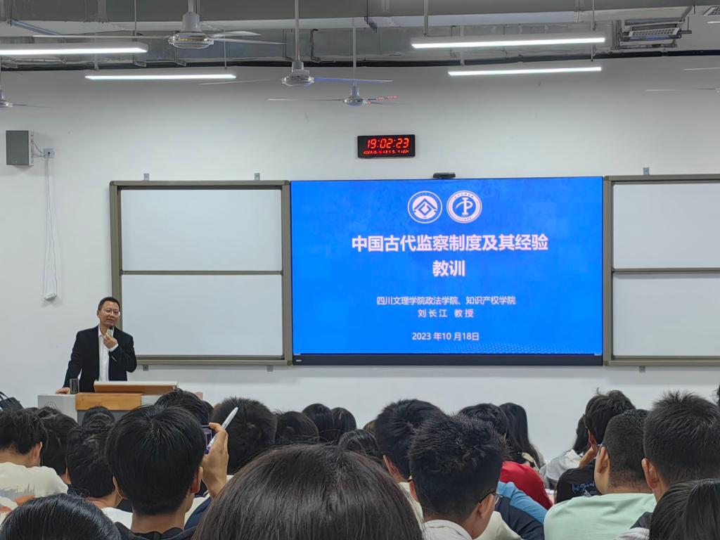 10月18日晚,刘长江教授于东区A318阶梯教室作“中国古代监察制度及其经验教训”学术讲座,公司党委副书记刘良训主持讲座,Mksport体育部分教师、历史学专业160余员工到场聆听。