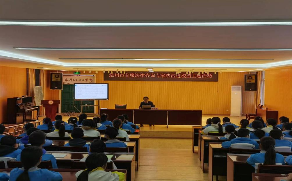 为推动法治宣传,提高未成年保护意识,通川区政法委、通川区法学会、通川区教育区共同组织了未成年保护法治宣讲活动,该活动系“达州市首席法律咨询专家法治进校园主题活动”“通川区百名法学家百场报告会法制宣讲活动”组成部分。
