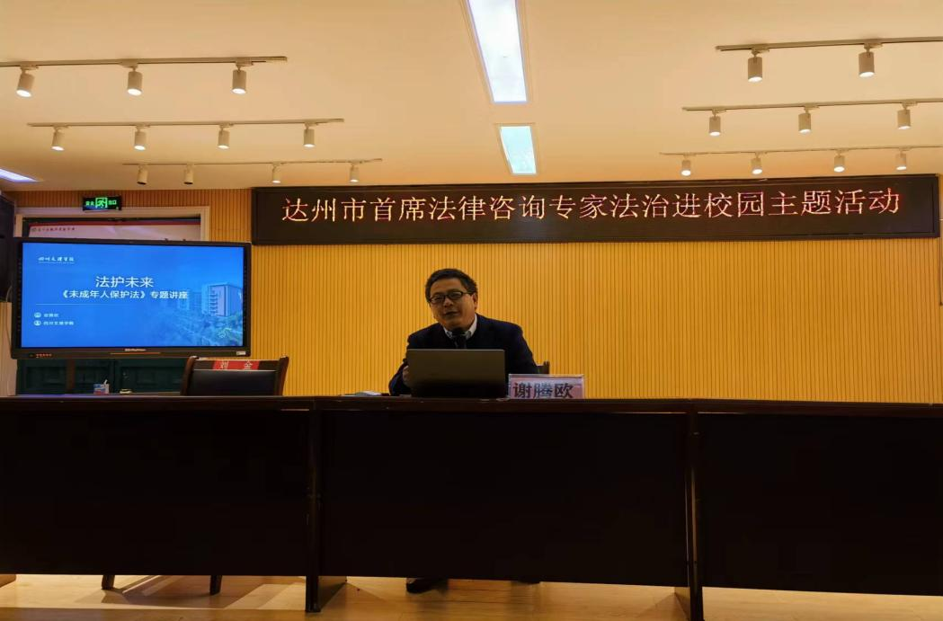 11月30日,达州市第一届首席法律咨询专家、公司教师、四川省知识产权培训(Mksport体育app官网入口)基地办公室主任谢腾欧应邀为通川区魏兴实验公司员工作“法护未来”《未成年保护法》专题讲座。