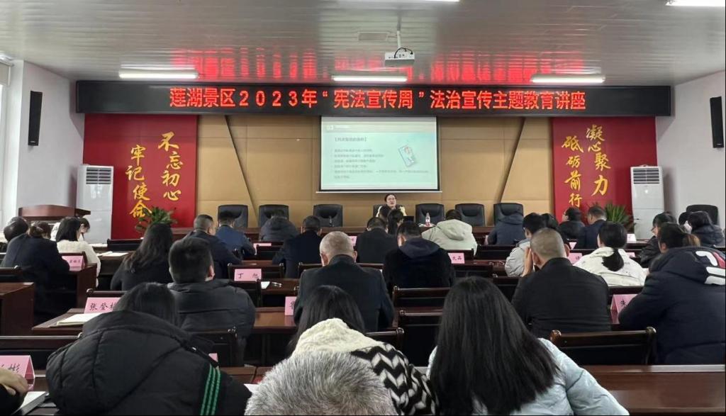 2023年12月4日,公司教师杨爽赴莲花湖管委会作普法讲座。本次活动以“大力弘扬宪法精神、建设社会主义法治文化”为主题,中共达州市通川区委依法治区办公室、达州市通川区司法局、达州市通川区莲湖景区及Mksport体育共同主办。
