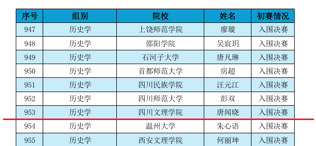 11月18日,第十一届“田家炳杯”全国师范院校师范生教学技能竞赛组委会发布初赛成绩公示名单,历史学专业员工唐闻晓成功入围决赛,实现了公司学子参加国家级师范技能竞赛的历史性突破。11月底,她将赴浙江师范大学参加线下决赛。