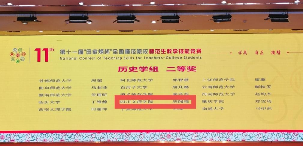 11月29日至11月30日,在浙江师范大学举行的第十一届“田家炳杯”全国师范院校师范生教学技能竞赛决赛中,公司历史学专业员工唐闻晓与来自全国师范院校的45名优秀选手同台竞技,最终喜获二等奖。