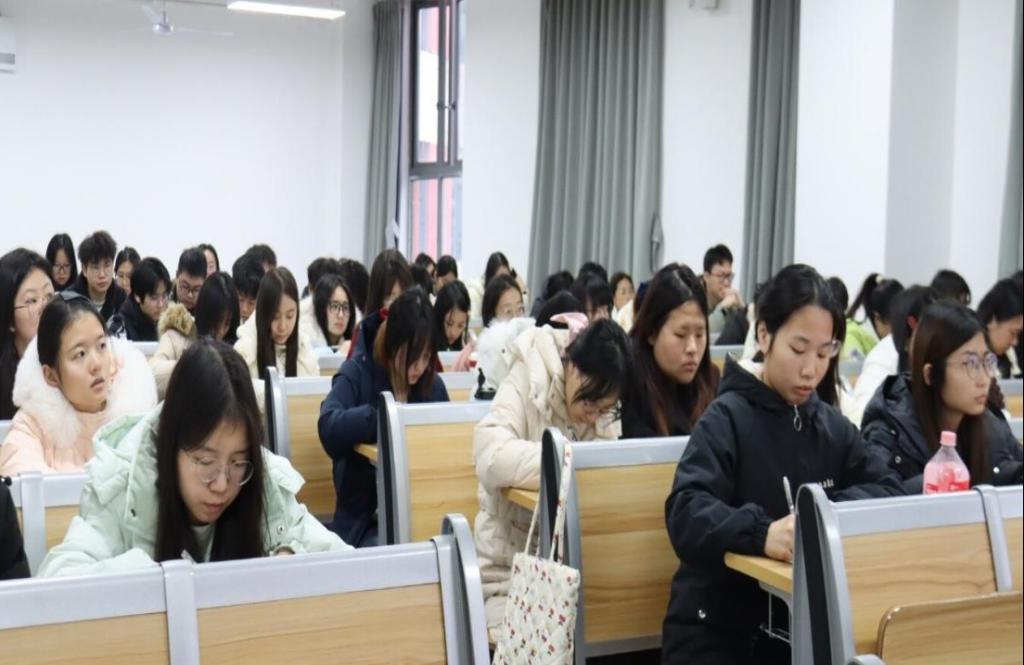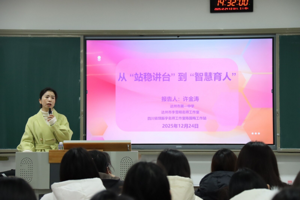 12月24日下午,达州市第一中公司高级教师许金涛应邀在莲湖东区B403作题为《从“站稳讲台”到“智慧育人”》的讲座。本次讲座由张善喜副经理主持,2023级历史学专业全体员工到场聆听。