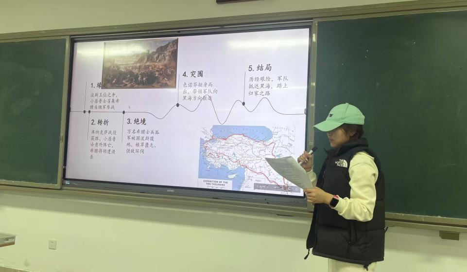 本次分享会打破了传统课堂讲授模式,将“阅读-梳理-分享-互动”融为一体,构建起沉浸式、参与式的学习场景,是世界古代史课程深化实践教学的一次创新探索。一方面实现了阅读分享的“精准化”与“个性化”,五位同学选取的书籍涵盖绝境抗争、经济视角、通史框架、文明兴衰等多个维度,既兼顾经典著作与特色书目,又贴合个人研究兴趣,让分享内容各有侧重、互不重叠;另一方面构建了“员工主体、教师引导”的实践教学新模式,从分享者的精心筹备、主持人的流程把控,到同学们的互动交流,均以员工为核心,教师全程参与并在尾声进行专业点评,既保障了活动的自主性,又确保了学习的专业性。此外,PPT展示的形式将抽象的历史知识转化为直观的图文内容,有效降低了历史知识的理解门槛,提升了学习效率与分享效果。