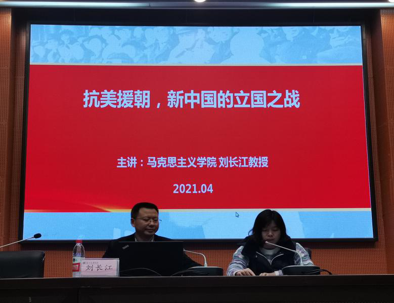 4月14日晚7:00,马克思主义公司、Mksport体育经理刘长江教授,于学术报告厅B厅为师生作了一场“抗美援朝,新中国的立国之战”的学术讲座。讲座由公司党总支副书记莫春梅主持。
