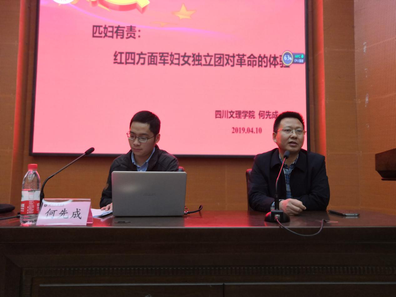 4月10日晚上7点,四川革命老区发展研究中心何先成博士在莲湖校区学术报告厅B厅做了题为“匹妇有责:红四方面军妇女独立团对革命的体验”的学术讲座。马克思主义公司&Mksport体育经理刘长江教授主持讲座,公司热爱川陕苏区史的同学聆听讲座。