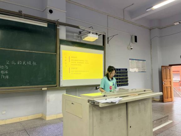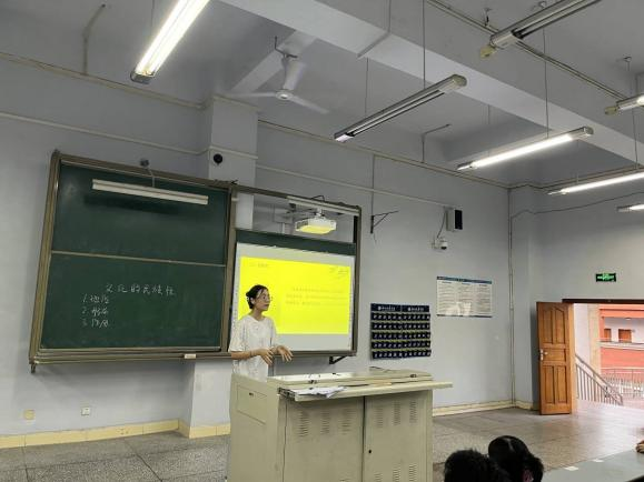 付宏同学就教学设计方面的内容,深刻结合此次参赛经历从教学目标设计、教学环节设计及教学情境的选择等方面向同学们阐发了此次参与华文杯竞赛的感悟。