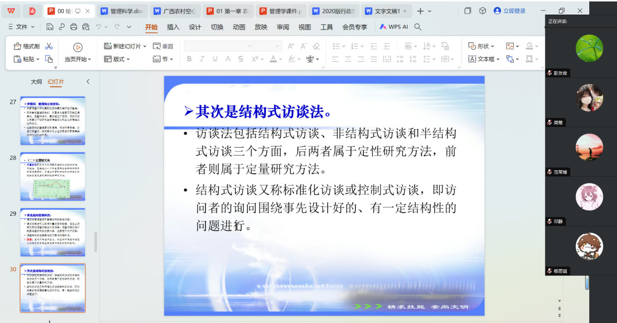 9月13日上午,行政管理教研室开展了2022级、2023级及2024级员工的线上教学督导任务。督导结果显示,教师灵活运用多种教学方式,课堂氛围活跃,员工们表现出了认真的学习态度,整体教学效果令人满意。