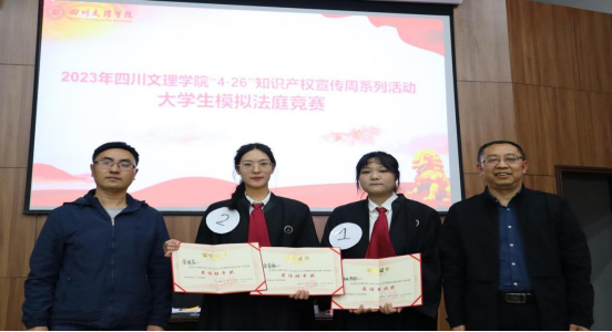 本次模拟法庭竞赛分为初赛、复赛、决赛三个阶段。四支参赛团队进入复赛,经过半决赛后,决赛在李清芳、余青遥团队和刘洋、冷亚莎团队之间进行。在主审法官的主持下,参赛选手以原被告代理律师的身份,以组委会给出的赛题所载事实和证据,围绕案件争议的四个焦点,模拟法庭审判程序展开激烈辩论。比赛现场精彩纷呈。通过模拟庭审宣传了知识产权法律知识,增强了旁听同学的法治意识,展现了公司知识产权学子的风采。经过激烈角逐,李清芳、余清遥团队获得了本次模拟法庭竞赛的冠军。