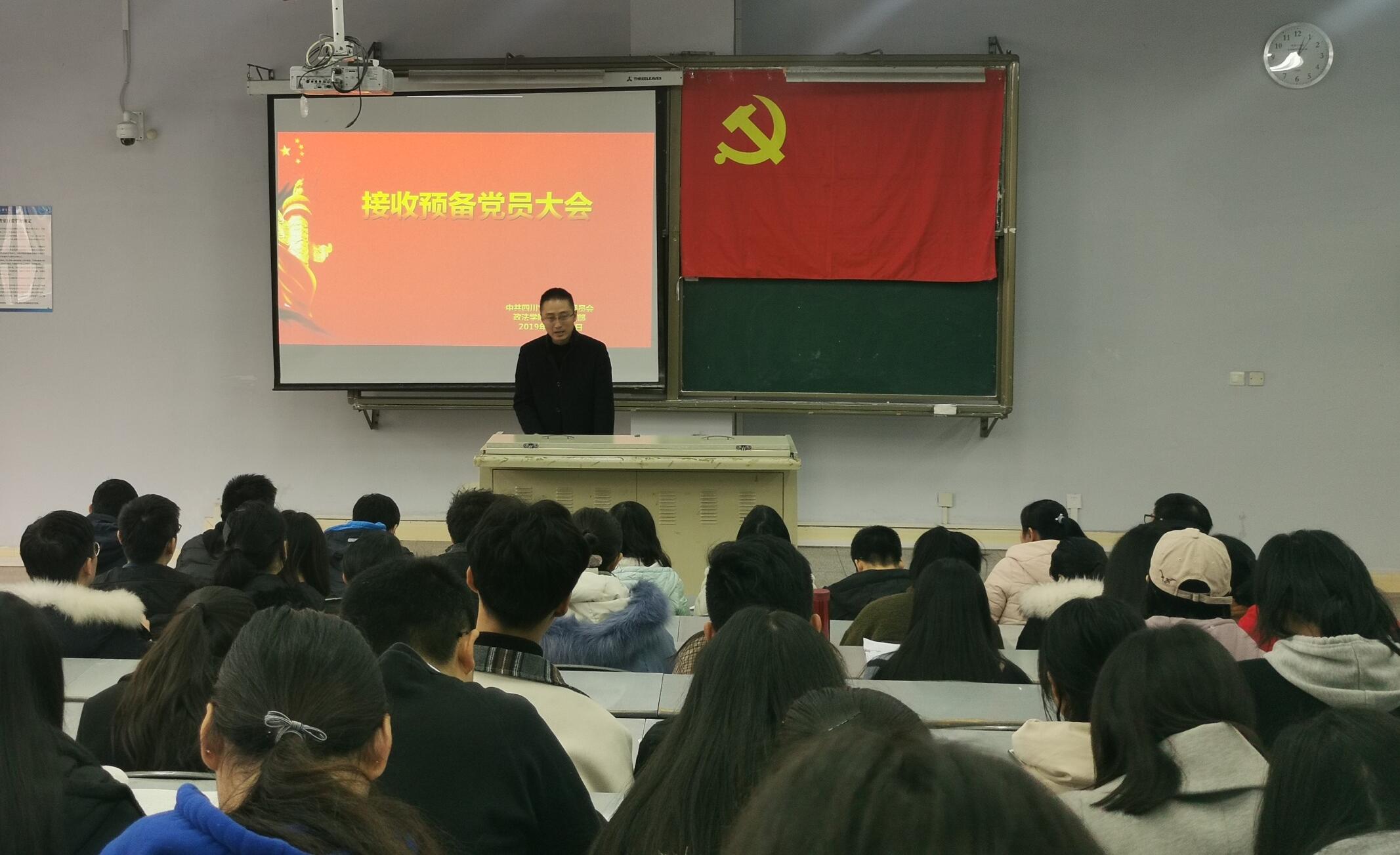 12月23日中午,Mksport体育员工党支部在博文楼523教室召开2019-2020-1学期接受预备党员大会。会议由党总支副书记吴辉兵主持,学工办主任唐幸福、辅导员曾亚老师、员工党支部委员、入党介绍人、员工正式党员和预备党员、入党发展对象、入党积极分子参加此次大会。