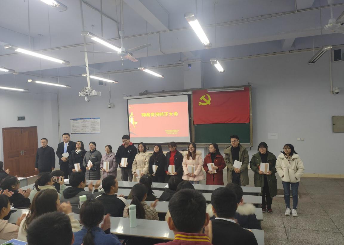 接着,全体正式党员对转正对象能否转正进行无记名投票。经过严肃公正地计票统计,参会的全体党员一致同意吴正霞、朱坐晴、杨黎、杨桂凤、左建琴、木库五过、尹梦茹、祝雅雪、蔡润禾9名同志转为正式党员。党总支副书记吴辉兵希望全体党员都要以党员的标准要求自己,在以后的学习生活中要严以律己,时刻发挥先锋模范作用。然后,由各位老师向本期转正对象和上期转正对象赠送政治生日礼物。最后,全体同志起立奏唱《国际歌》,在嘹亮的歌声中,会议圆满结束。