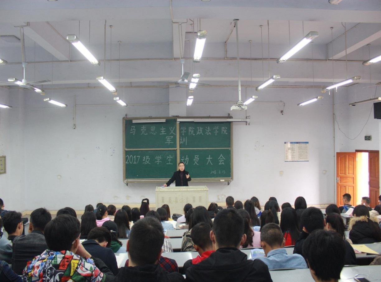 3月13日17:00,公司在莲湖校区教楼510教室召开2017级员工军训动员大会。党总支书记刘春辉、经理王秀珍、党总支副书记吴辉兵、学工办主任唐幸福、辅导员刘丹、团总支副书记邹梦溪以及2017级全体员工参加。