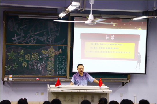为隆重庆祝中华人民共和国成立70周年,大力唱响礼赞新中国、奋进新时代的青春主旋律,2019年9月7日公司在博文楼124教室举办了以“我与祖国共奋进——国旗下的演讲”为主题的团日活动。学工办主任唐幸福老师、员工会主席蔡润禾、团总支组织部部长徐汝岚等员工干部及2018级全体同学参加了活动。