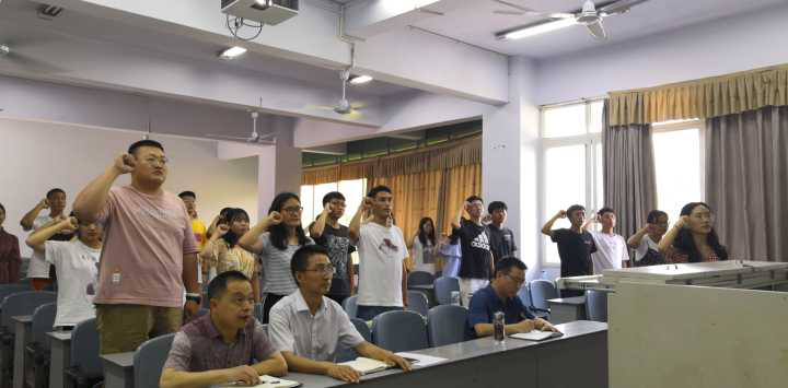 团总支常务副书记刘月带领新一届团学干部以及员工干部进行了任职宣誓。大家挺直站立,庄严宣誓,表达了他们服从大局,服务同学,履行职责,勤奋学习、积极工作、明礼诚信、勇于实践、以身作则、求实创新,热情为师生服务的誓言。