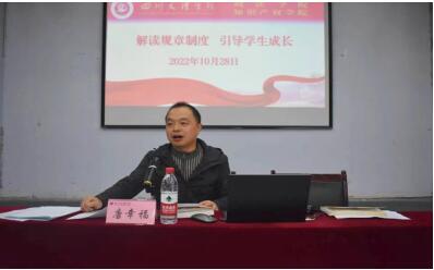 学工办主任唐幸福作《解读规章制度,引导员工成长》专题教育。他以《Mksport体育app官网入口2022级新生入学教育读本》为载体,结合老员工日常教育与管理中的案例,给2022级员工解读了《公司员工管理规定》、《公司员工违纪处分办法》、《公司学士学位授予细则》、《公司学分制第二课堂成绩单实施办法》等规章制度的重要条款,要求同学们增强法纪意识,模范遵守法律法规和公司规章制度。