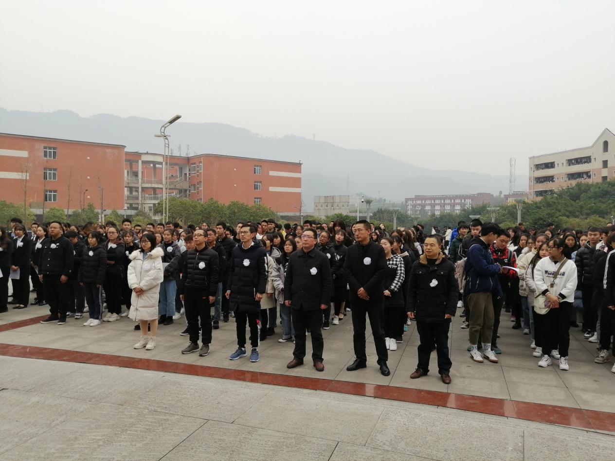 为进一步加强爱国主义教育,引导青年员工牢记历史、不忘过去,缅怀先烈、面向未来,激发爱国热情、凝聚奋进力量。13日中午,公司师生在音乐广场举行2019年‘南京大屠杀’死难者国家公祭日纪念活动。公司党总支书记刘春辉、党总支副书记吴辉兵、学工办主任唐幸福、历史教研室主任王盟、辅导员曾亚、历史教师张涛出席,18级、19级全体员工参加。