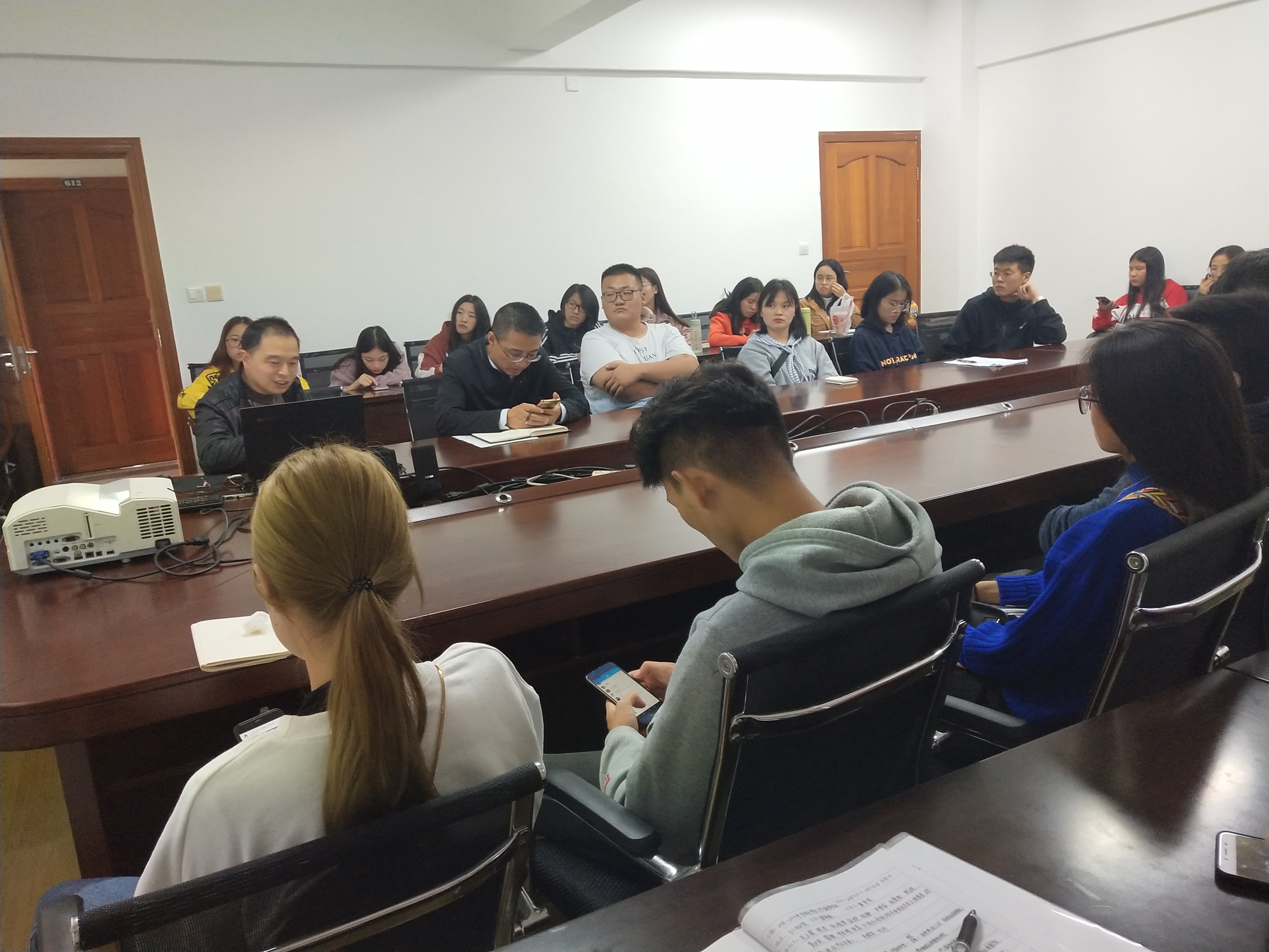 2018年10月24日中午,公司在莲湖校区一教楼611会议室召开了2018-2019-1学期第六次员工工作联席会议。会议由学工办主任唐幸福主持,党总支副书记吴辉兵、辅导员刘丹、团总支常务副书记吴正霞、员工会主席张良出席会议,祝雅雪、俞婷、明静、尹梦茹、胡曼羚、张娟、夏世英、雷微、朱坐晴、段喜,大一至大三各班班长、团支书、文娱委员和迎新晚会节目负责人列席会议。