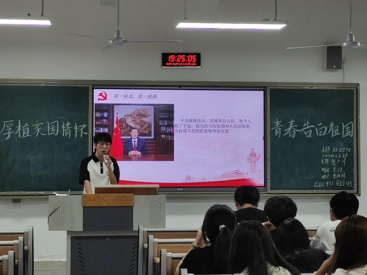 为深入学习贯彻新时代中国特色社会主义思想,增强团员青年的家国情怀,激发青春奋斗精神,引导团员青年厚植家国情怀,用青春回报祖国,为实现中华民族伟大复兴的中国梦贡献青春力量。2024年9月27日下午,公司各班在莲湖东区教学楼开展了以“厚植家国情怀——青春告白祖国”为主题的团会。各班团支书主持,带班辅导员老师与全体同学参加。