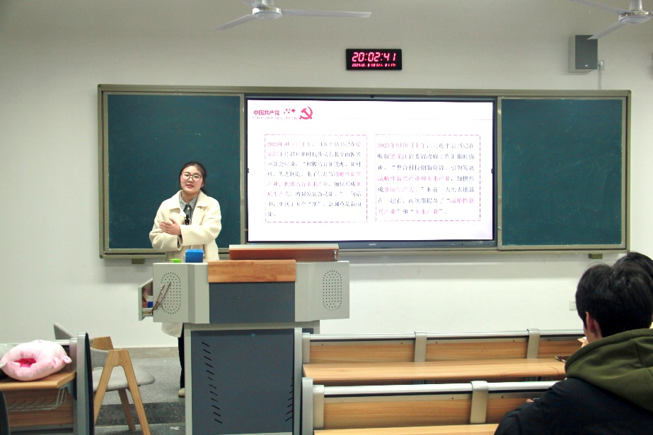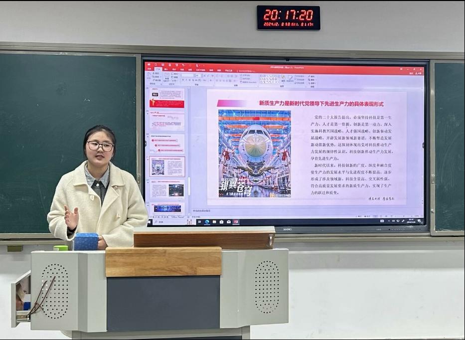2024年12月8日晚,公司“青马班”学员在东区B103教室围绕“新质生产力”进行线下宣讲活动。本次宣讲活动由公司团总支副书记、公司第十四期“青马班”学员柳爽主讲。