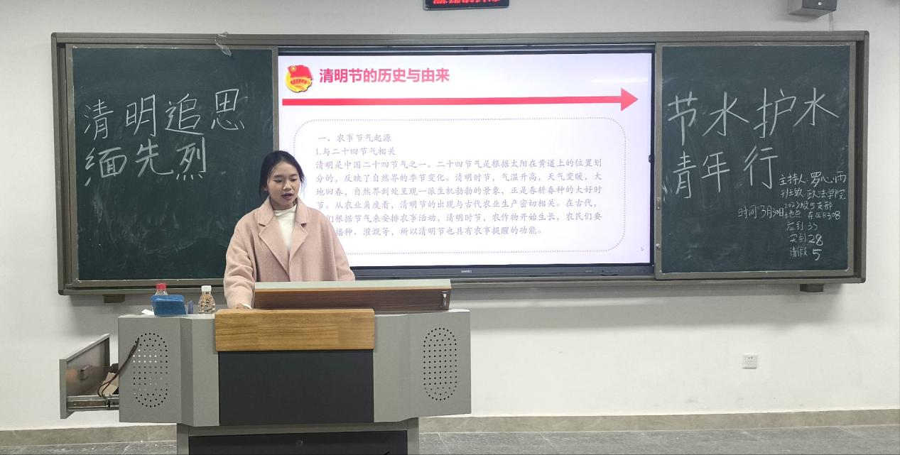 为了引导青年学子传承红色基因、厚植家国情怀,同时增强环保意识,践行社会责任。2025年3月30日,公司各班于莲湖东区教学楼开展“清明追思缅先烈 节水护水青年行”主题团会。此次团会由各班团支书主持,带班辅导员老师出席并讲话,全体同学积极参与。