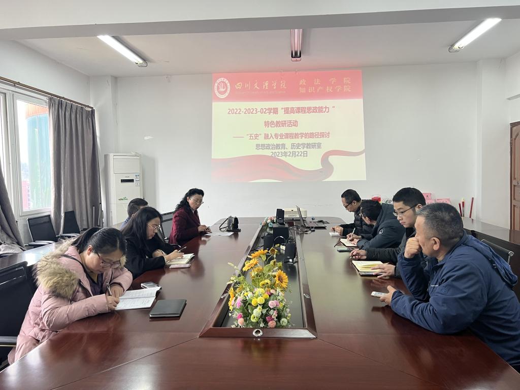 2023年2月22日,思想政治教育专业教研室与历史学专业教研室在博文楼611会议室联合召开以“提高课程思政能力”为主题的特色教研活动,会议紧紧围绕“五史”教育深度融入专业课程教学的有效路径构建而展开。