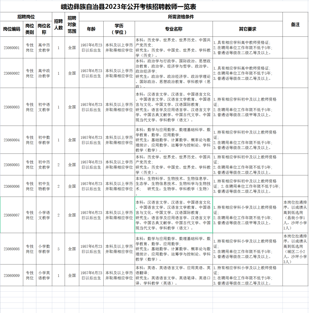 附件1:峨边彝族自治县2023年公开考核招聘教师一览表 .xlsx