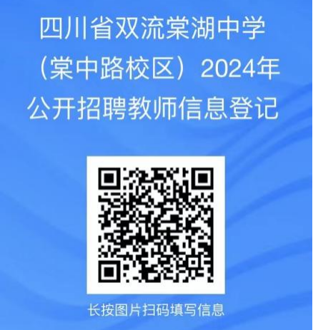 ②现场报名的应聘人员在规定报名期限内,按报名程序要求,将个人简历等相关报名资料准备齐全,到棠湖中学双江路校区现场报名(成都市双流区双江路二段188号)。